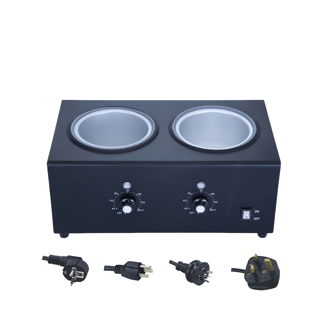 A convenient and efficient dual wax warmer designed for salons and home use. It allows you to heat two different wax types at the same time with adjustable temperature control.